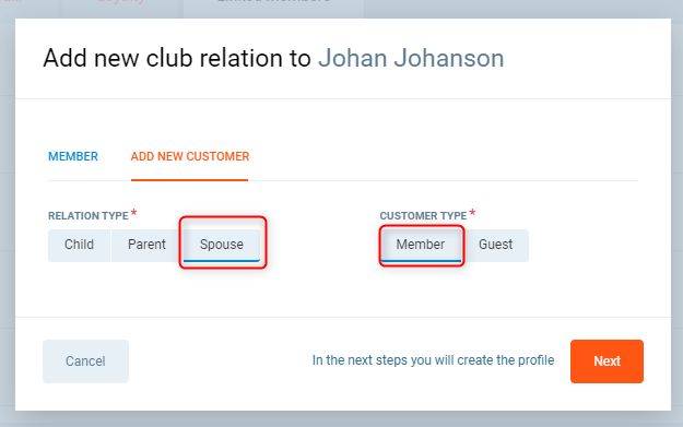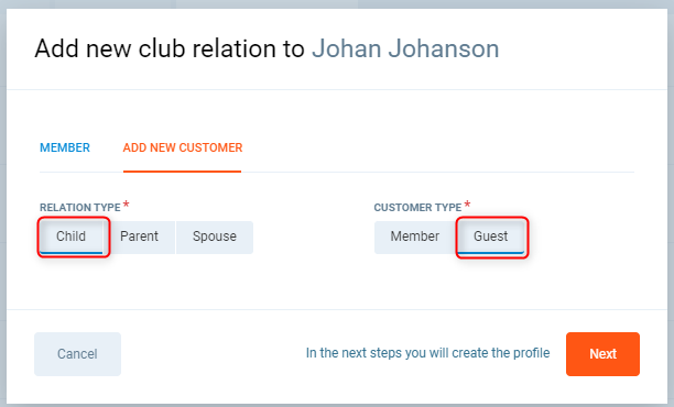 This article is a step-by-step instructions on how to effectively create family relations in the PGM. It is the actual use case, where an existing club member will be linked to their spouse, who will become a member - in the Scenario 1, and then to a child, who will become a club guest - in the Scenario 2.