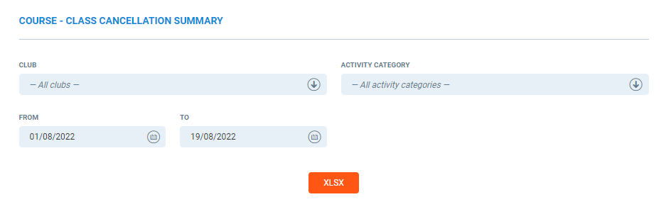 Dates - select the date range, this will display all classes with a start date between this range and the cancellations of those users.