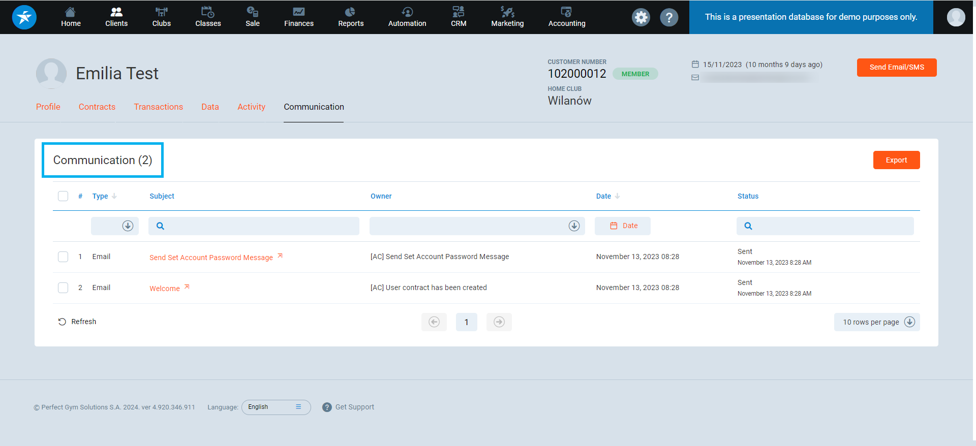 - To access the Communication tab in Member Profile, go to PGM-> Clients-> Clients-> Club Members.
