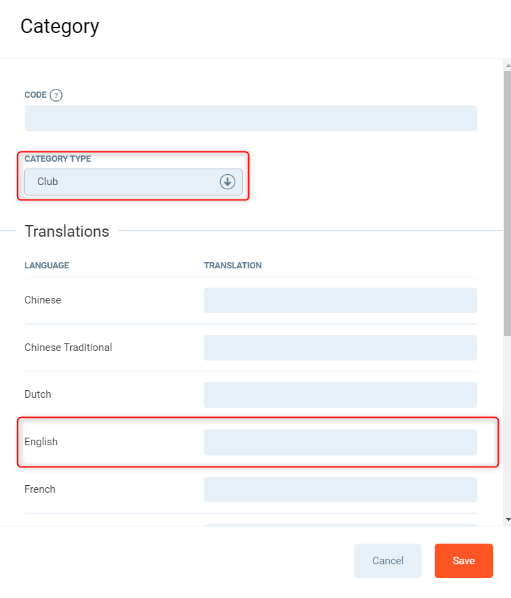- Translations - Name of the category, set this in English (any other languages can be used, however may not be visible unless using that language). The name itself can be anything you wish. eg. 'Default Ledger'