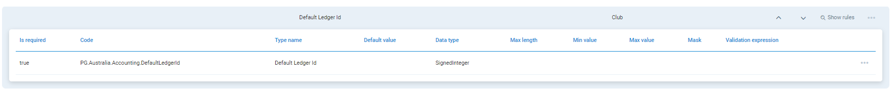 - Translations - Set the attribute name to what you want, eg. 'Default Ledger Id'. This will allow it to be identified in PGM->Clubs->List of clubs