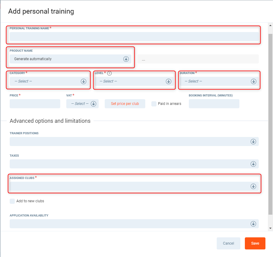 Remember that you need to create levels in Activity category prior creating the Personal Training product.