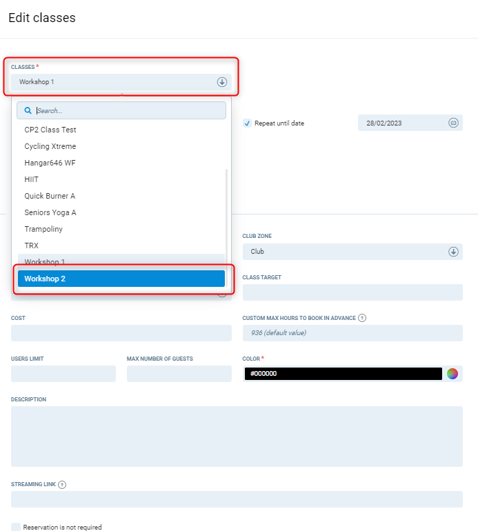 - Go to the Class that has been booked and change its type.