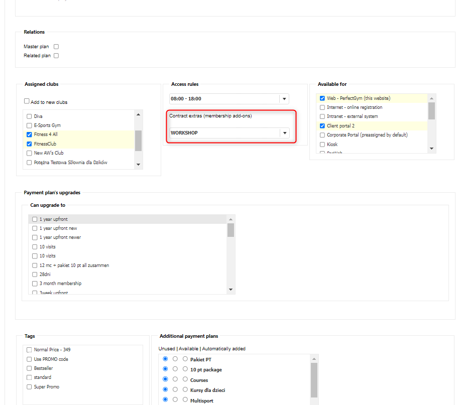 Areas concerned in the article are classes configuration, payment plans and contract extras. Before you will test this on your own, you can refresh your knowledge on those topic through following articles: contract extras, payment plans, classes configuration and this one for classes in the client portal.