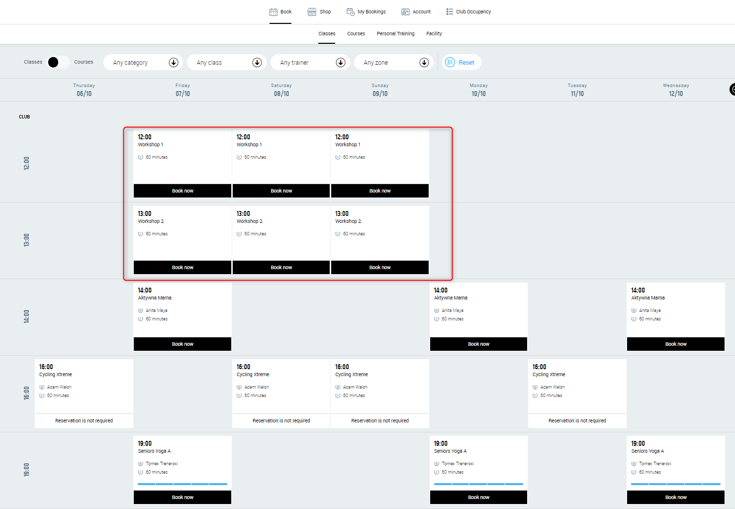 Workshops (type of the classes which you have just configured above) are available in the Client Portal (and Mobile Application if used). All that has to be done now is to book it.