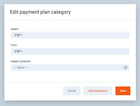 Moving forward to Payment Plan Categories. Go to the PGM -> Sale -> Payment Plan Categories. To start with, click Add Payment Plan Category.