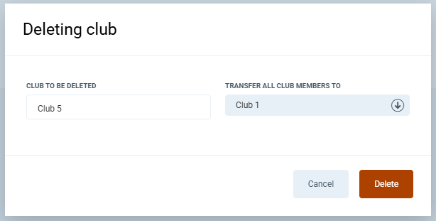You must select a destination club in the Transfer all club members to field. This ensures all user accounts associated with the deleted club are migrated to a valid operating club.
