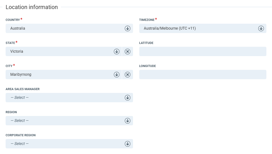 Area Sales Manager: Assigns a specific sales manager to this location.