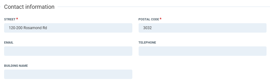 Complete the Contact information section, ensuring the Postal code matches the required mask.