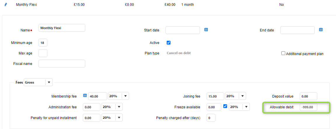 If you want to allow your members buy product on debit you need to start from specifying the allowed purchase amount for debit. To do so, go to Payment Plan configuration and under tab Allowable debit put amount with minus ("-").