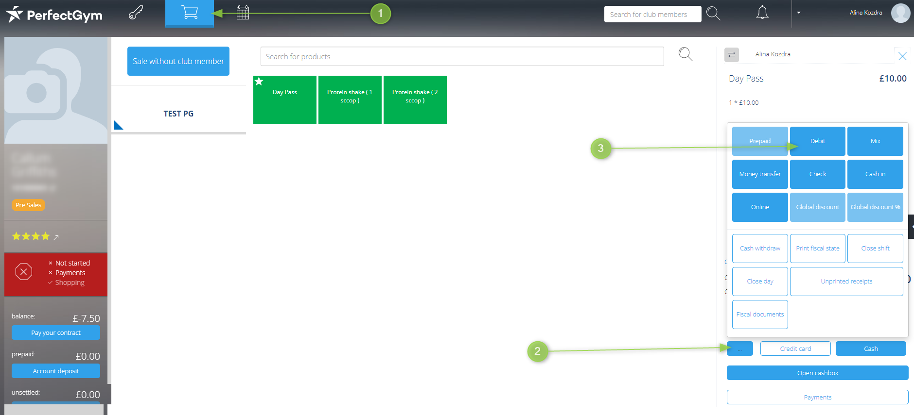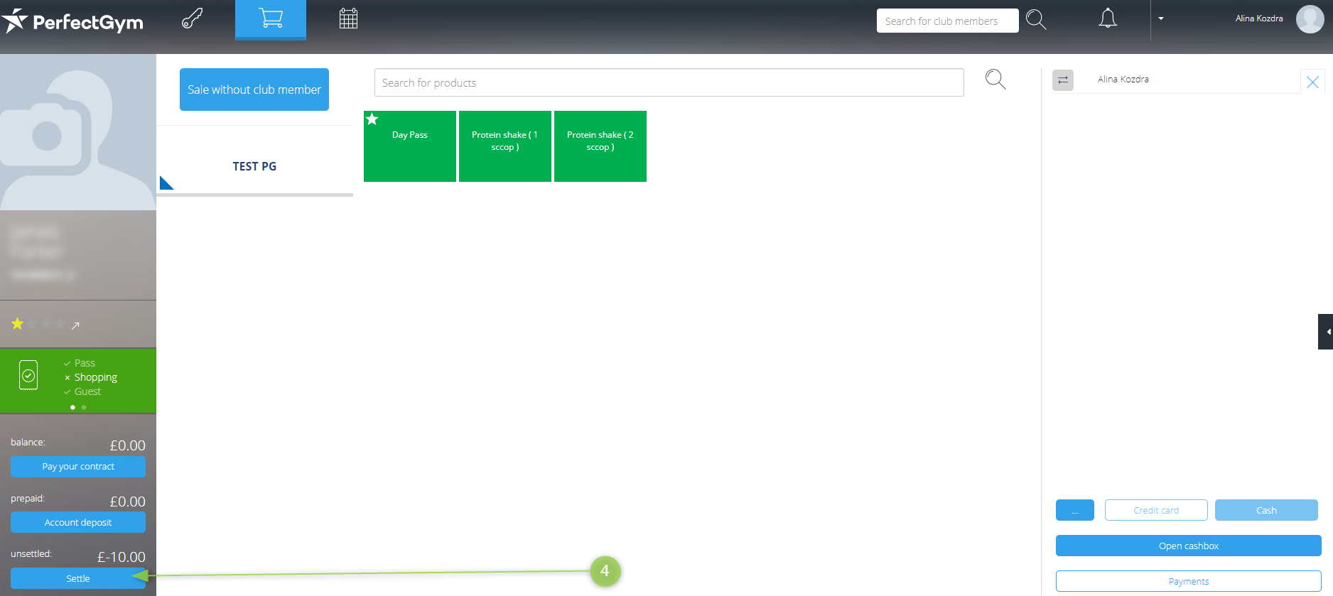 If the members want to settle the arrears, it is enough to process the payment as with a regular payment by clicking on the Unsettled -> Cash / Credit Card.