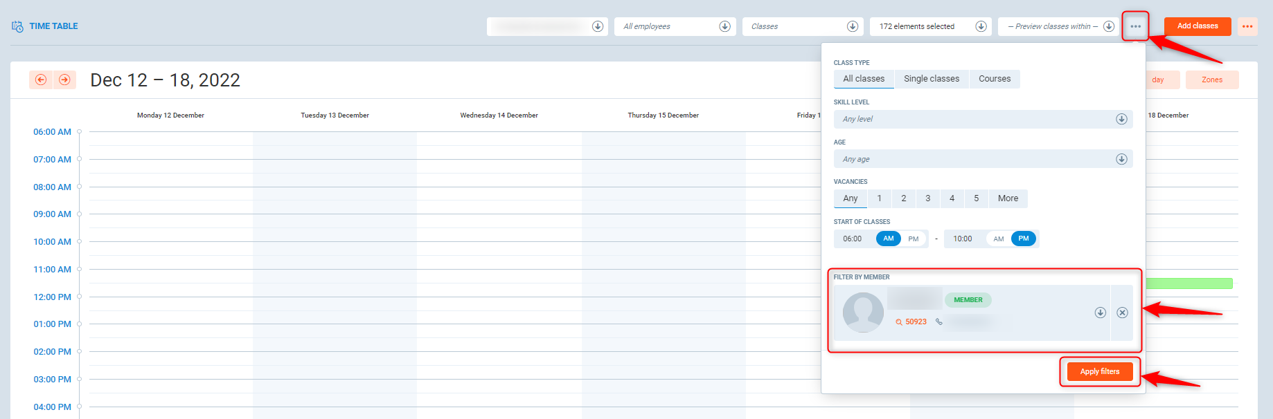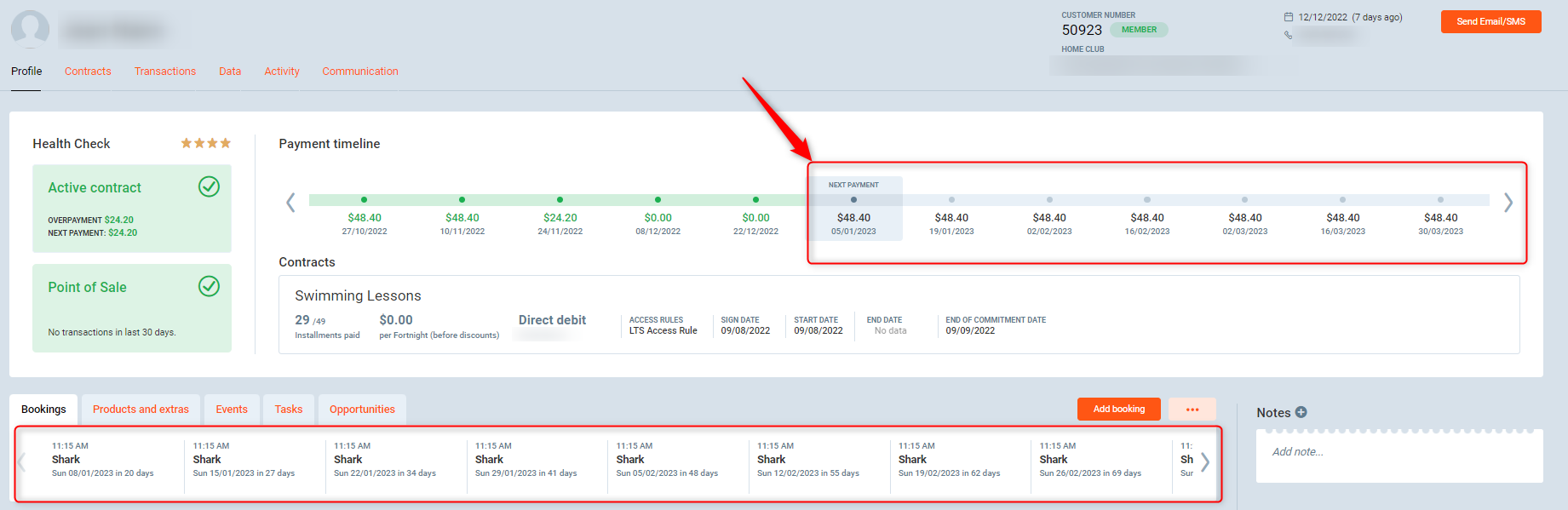 On the club member profile, new charge lines will appear and connected to the classes listed below.