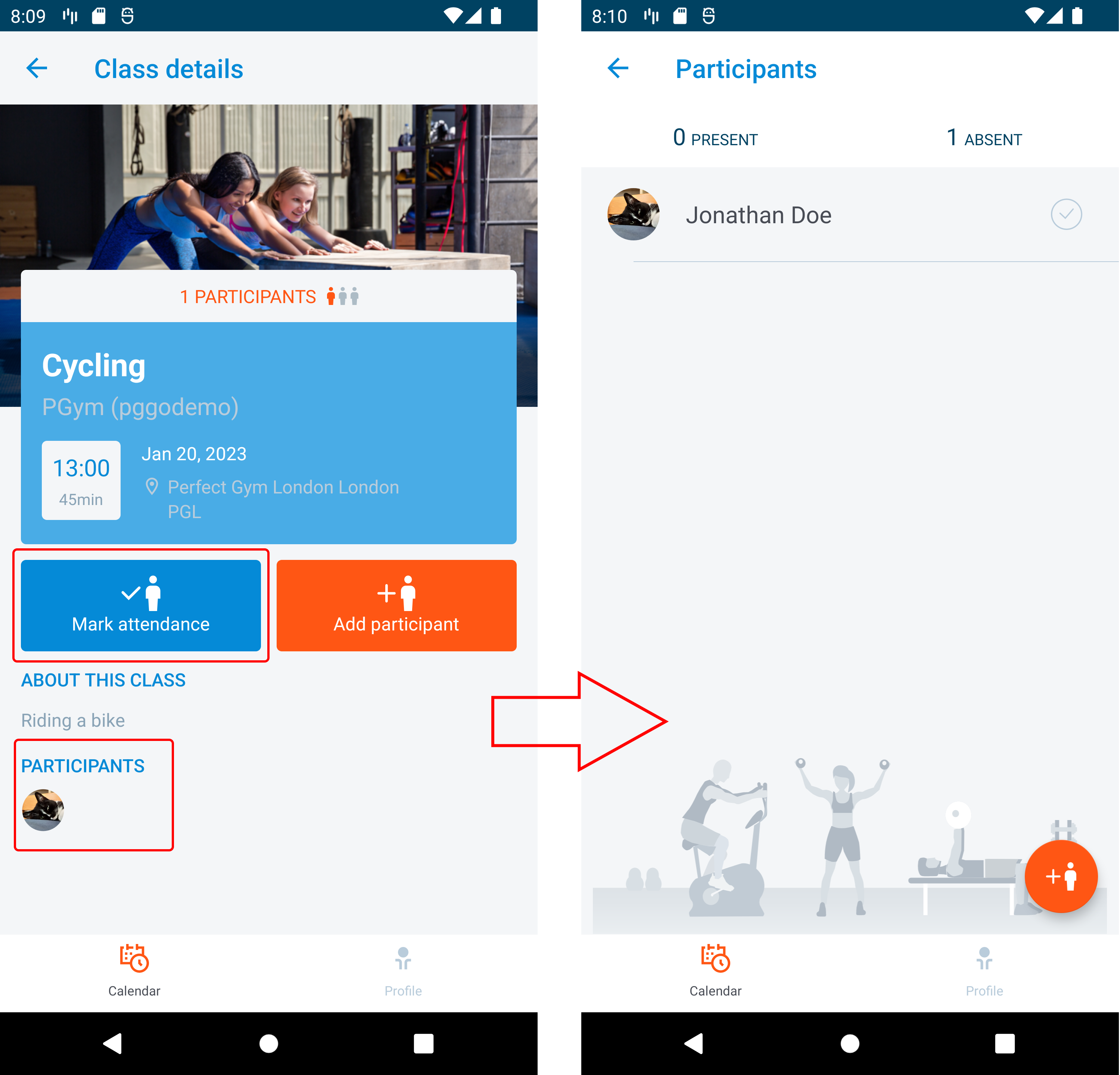 2. Then you can navigate to Participants screen by tapping either mark attendance button or enrolled members icon.