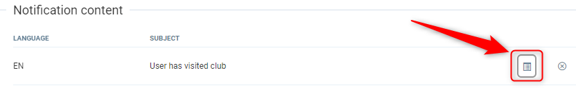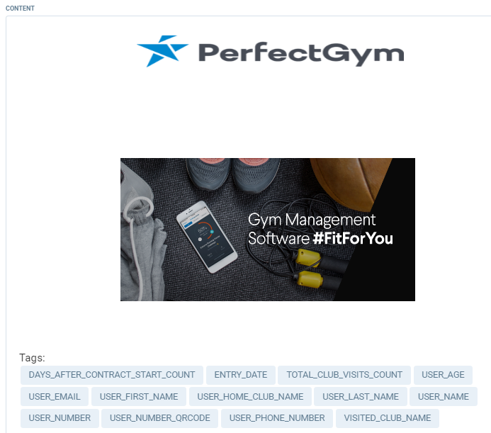 Content - Allows you to create the template content for your notification. If you want to grab information from the system to make it more personalised (like club member name) use the tags below the footer.