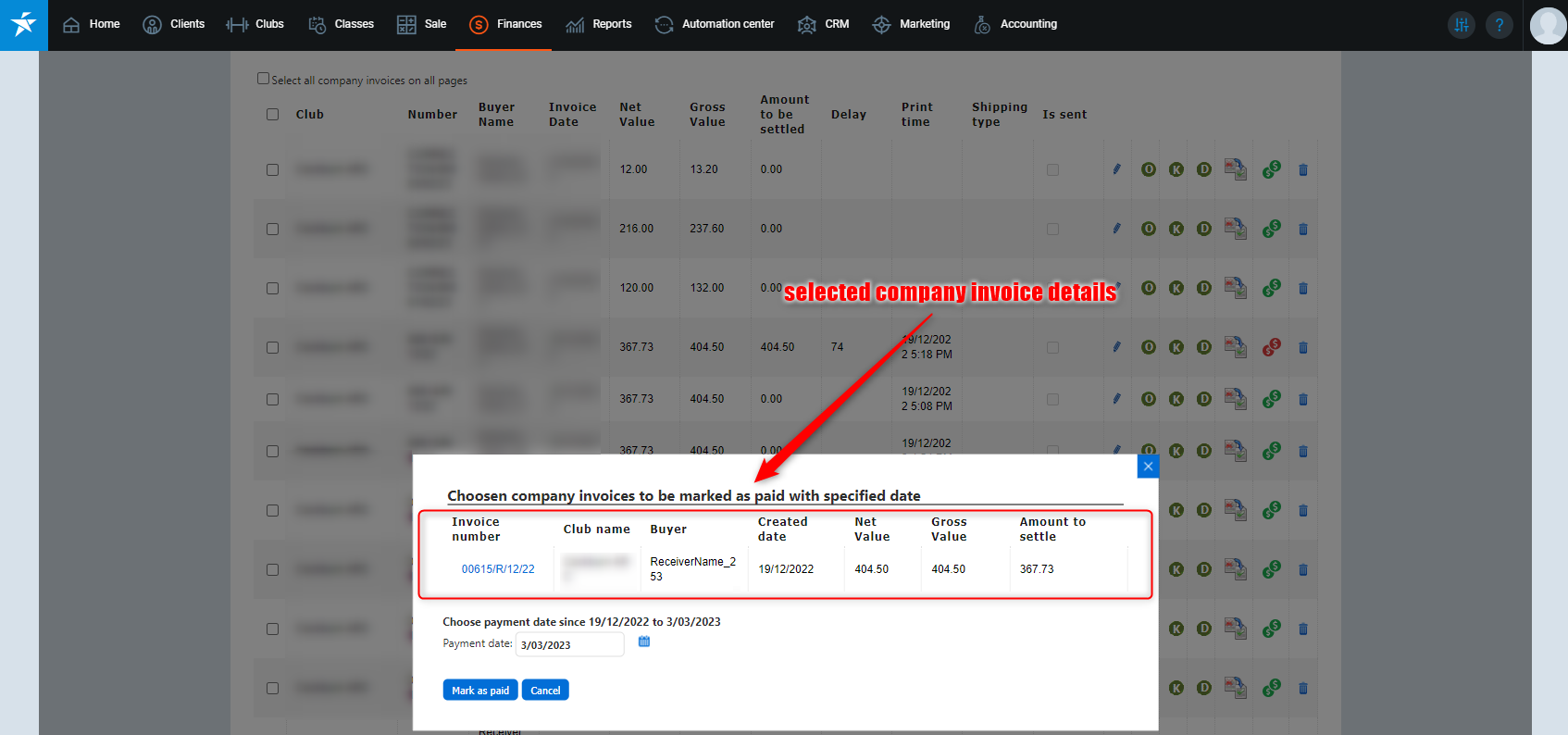 This article explains how to mark more than one company invoice as paid in case of corporate clients. This feature allows marking invoices as paid with a specified date of payment, which you choose from a date range starting from the invoice creation till the current date.