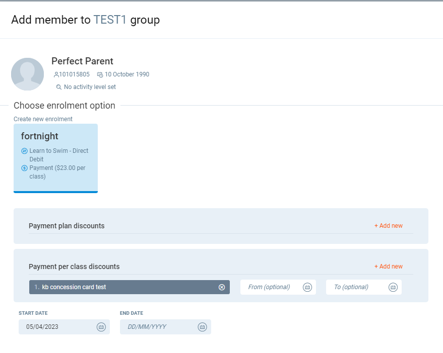 - From the Members list, select e.g. a student with a concession card. The member has a concession card (custom attribute) configured like the below.