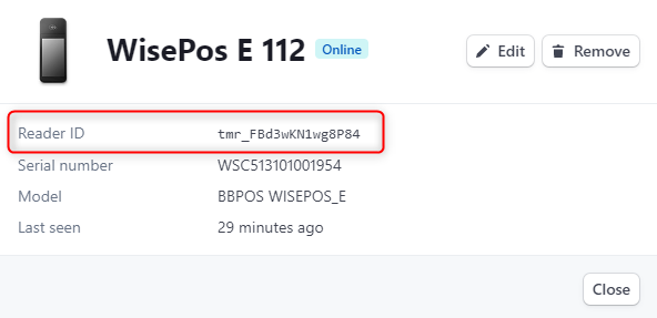 6. Copy the reader ID and use it to configure POSweb application with the selected terminal.