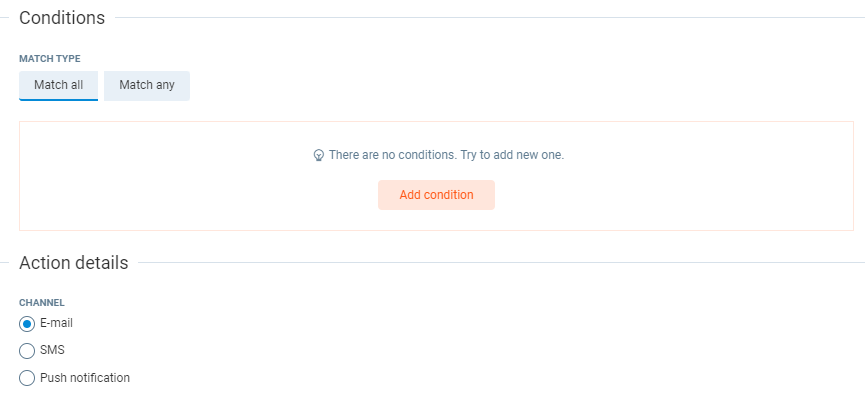 - Match any - This requires at least one condition to match.