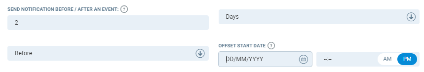 Send notifications before/after an event (days) - This will allow you to set the rules based on when notifications will be sent. You can send the notification x days before/after the event using the drop down list.