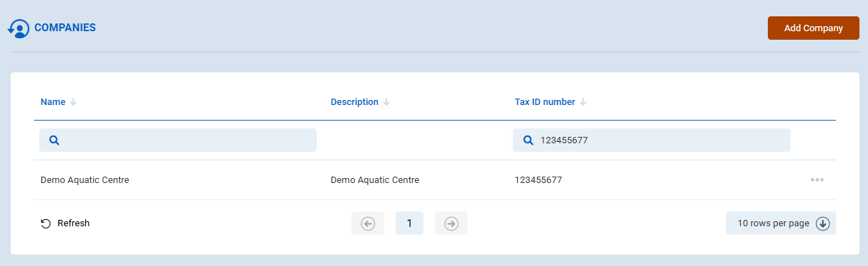 Click the Add company button, located above the grid.