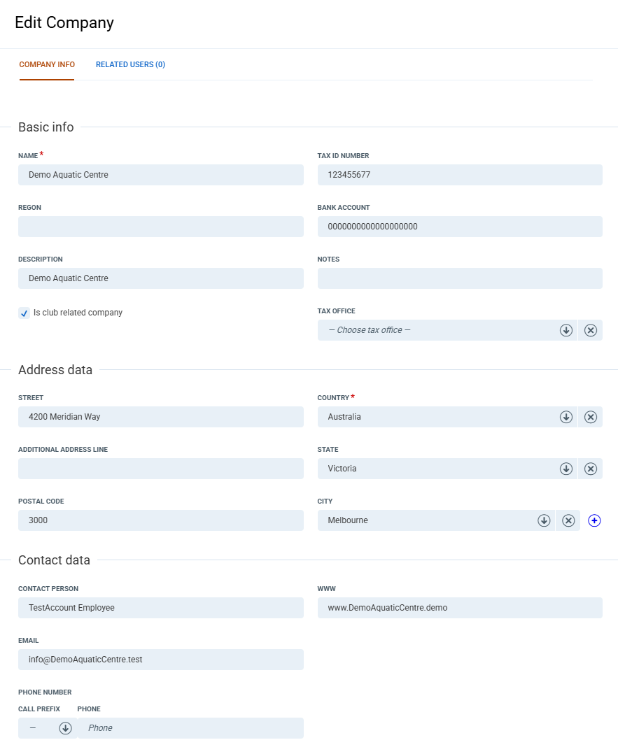 Invoices/Company Invoices: If editing company details, be mindful that selected modules such as Invoices and Company Invoices will not update any existing documents company details on the invoices as this captures the details at the time of generation.