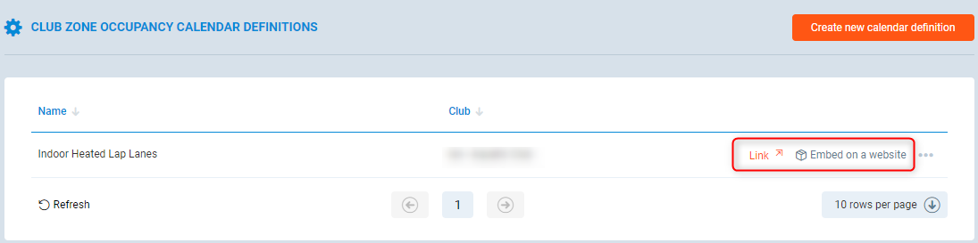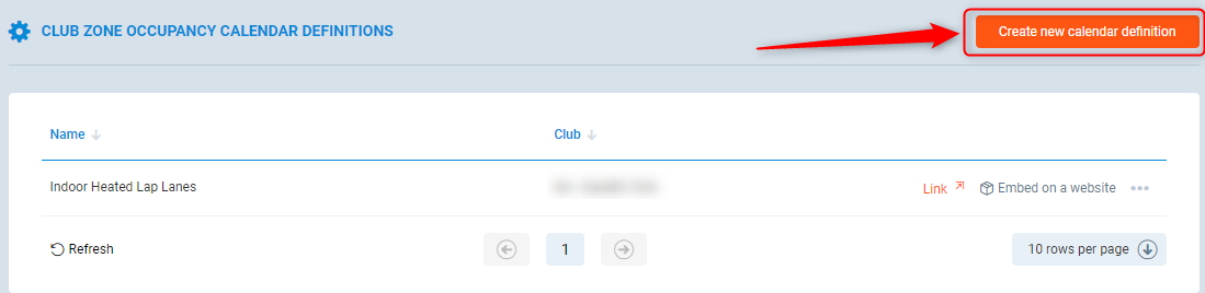 This will display a list of all the calendar definitions for the club zones you want to present occupancy for.