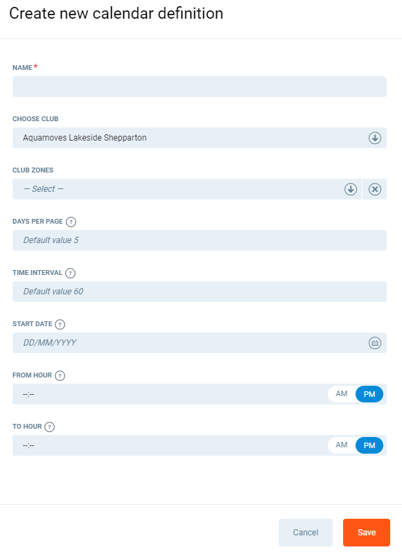 Name - Choose a name for this club zone occupancy calendar