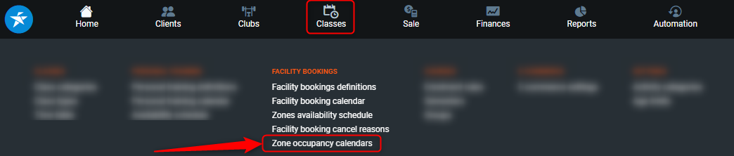 To access the zone occupancy calendar, go to PGM -> Classes -> Zone occupancy calendars