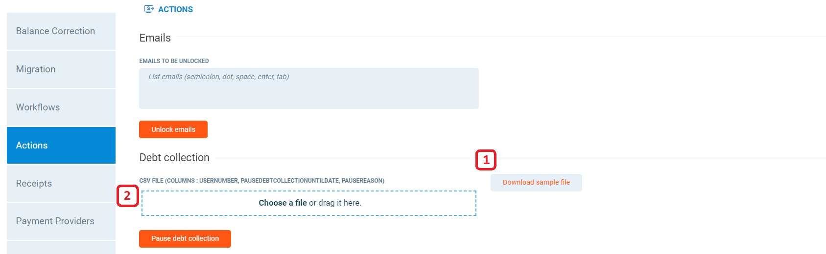- Click on Pause debt collection button and check if the chosen members were paused/excluded
