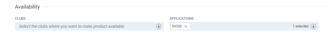 6. In the Availability section select KIOSK for Applications and clubs for which this product should be available.