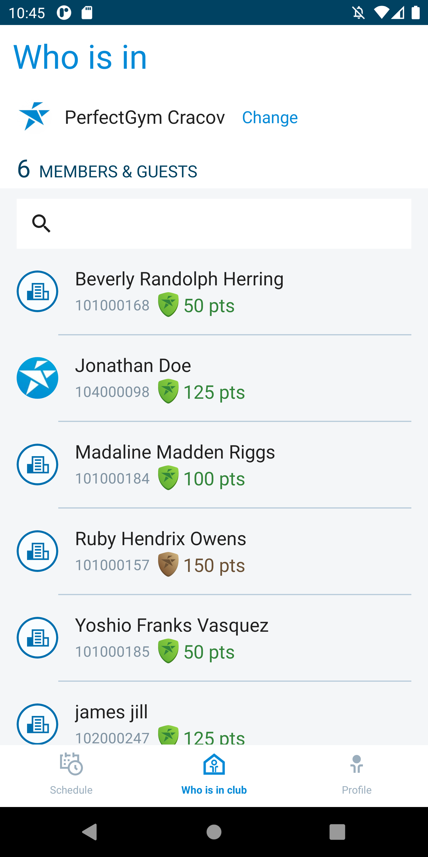 Users earn 25 points for each club visit. For example, after visiting a club 5 times, the user will earn 125 points for these visits.
