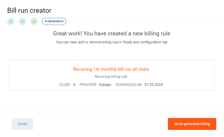 Execute bill run - after completing all steps bill run will be generated and ready for acceptance.