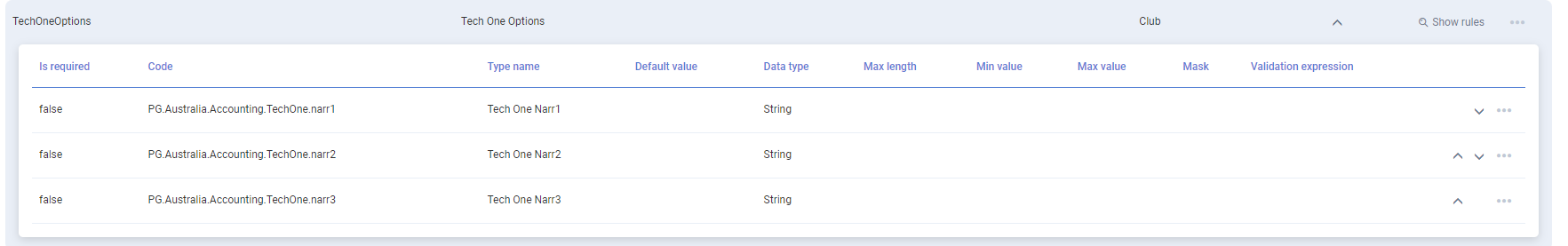 - Translations - Set the attribute name to what you want, eg. 'Tech One Narr 2'. This will allow it to be identified in PGM->Clubs->List of clubs