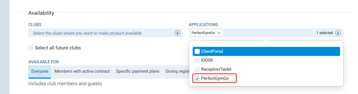 There must be a product configured beforehand, visit this article for details. During the product configuration, remember to select visibility in the Perfect Gym Go.