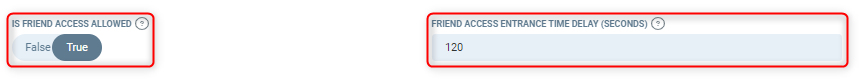 - Friend access entrance time delay (seconds) - here specify how long after the Member enters the club the guest can enter.