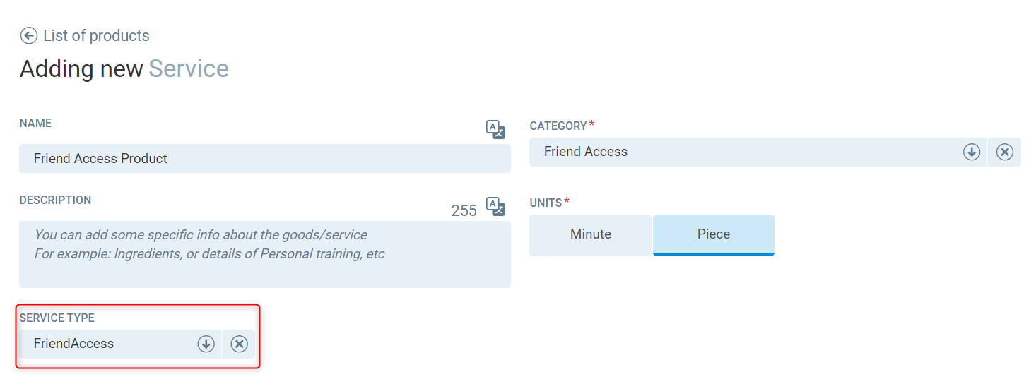 STEP 1. Create a product with ClubServiceType - Friend Access.
