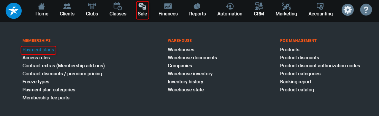 1. Go to PGM -> Sale -> Memberships -> Payment Plans.