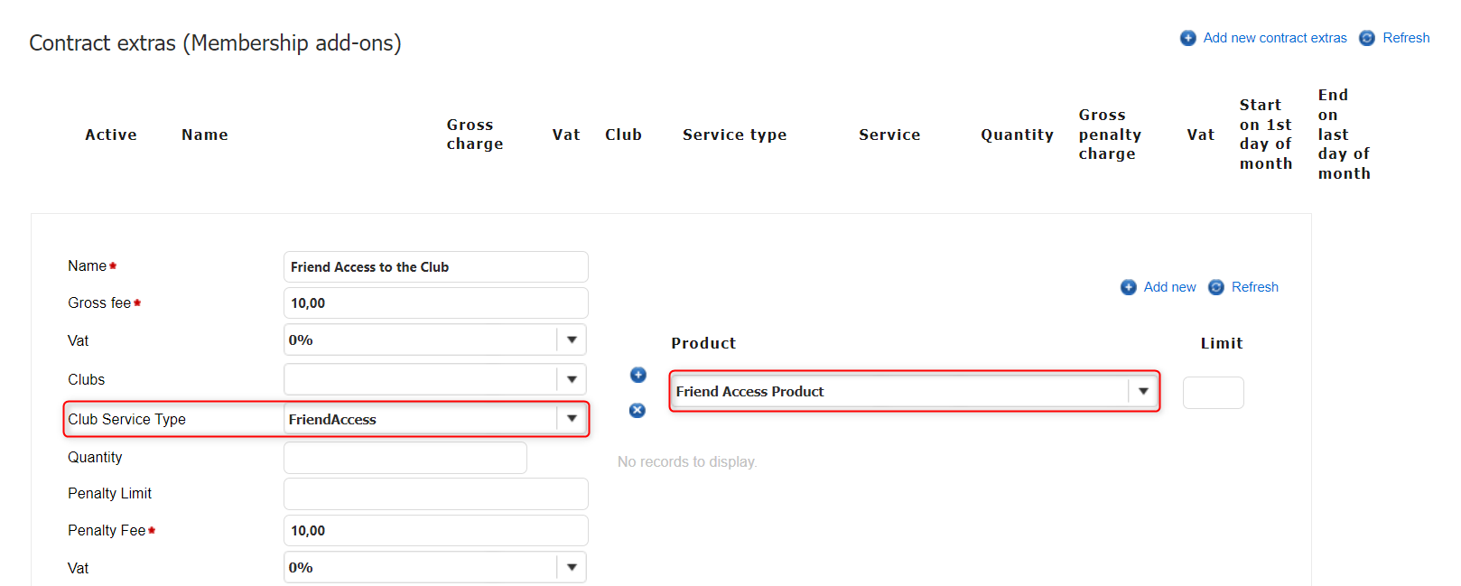 STEP 2. Create a contract extra with ClubServiceType - Friend Access and assign the product.