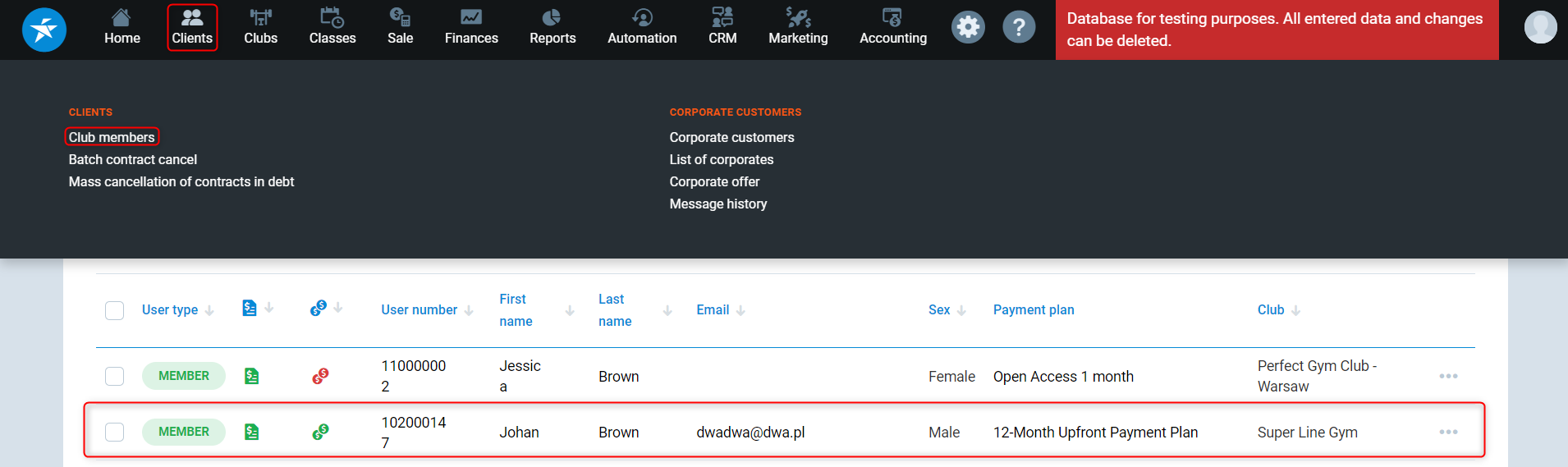 1. Go to PGM -> Clients -> Club Members -> Member profile.