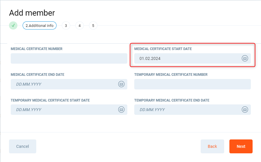 Note that Medical Certificate Start Date must be set before today's date or at the latest with today's date, otherwise, access to the gym will not be granted until the start date.