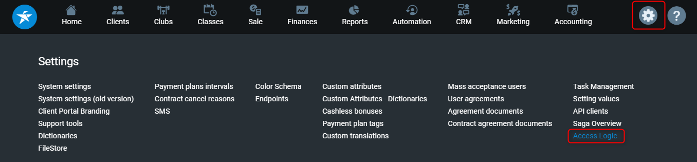 1. Go to PGM -> Settings -> Access logic.
