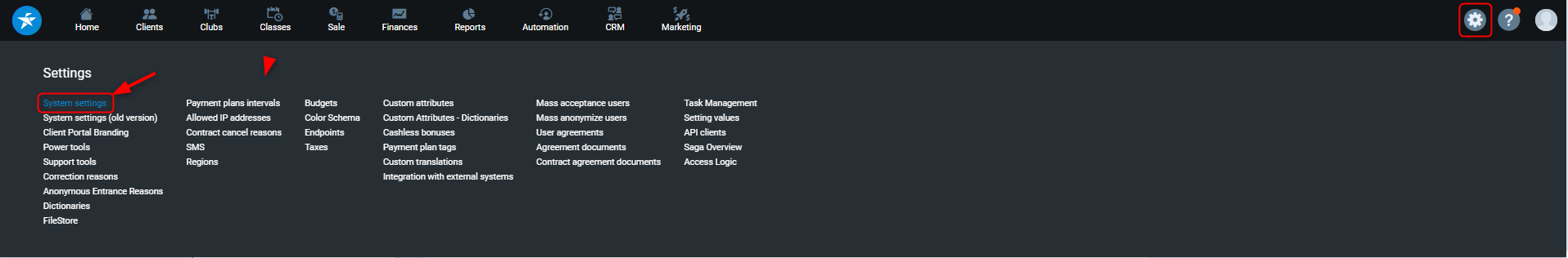 PGM -> Clubs -> Employees -> System Permissions -> System Settings