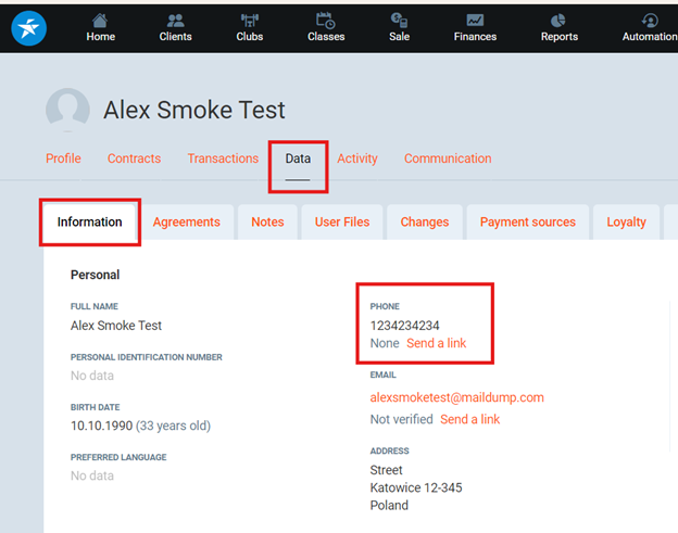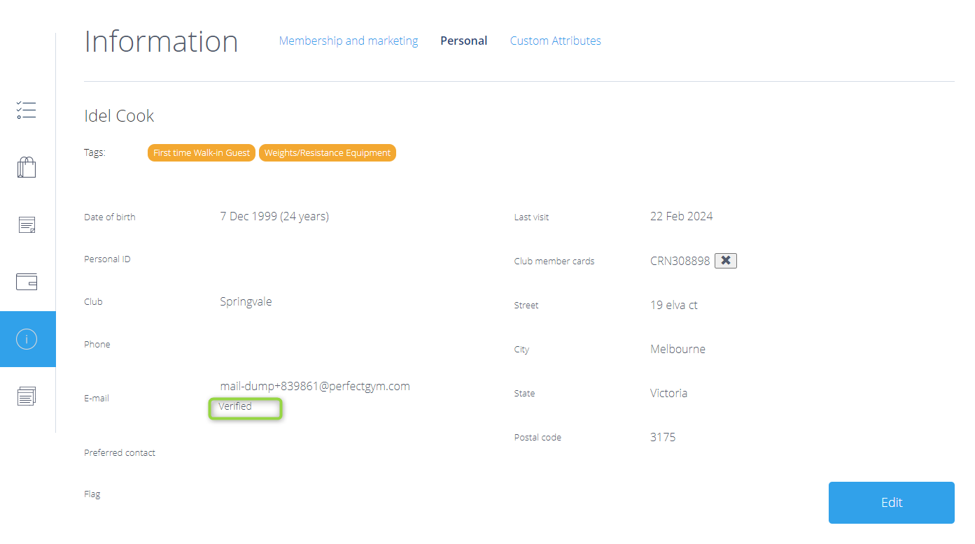 - PGM -> Club Members -> Member Profile -> Data -> Information. Next to the user's e-mail, there will be the verification status and a button that will allow you to send, or resend a notification.