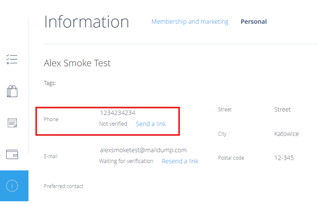 E-mail and phone number verification is used when users create an account with a new e-mail address or phone number, or when they change their current information. With this functionality, you can check which users have verified and correct e-mail addresses and phone numbers, as well as those who haven't confirmed their information yet.