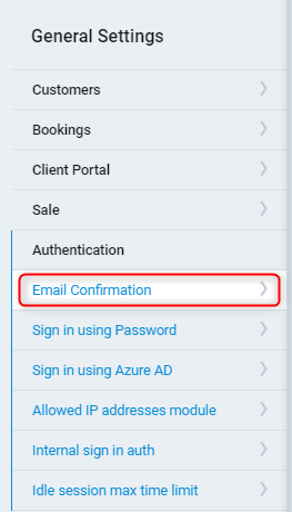 2. Select Authentication -> Email Confirmation.