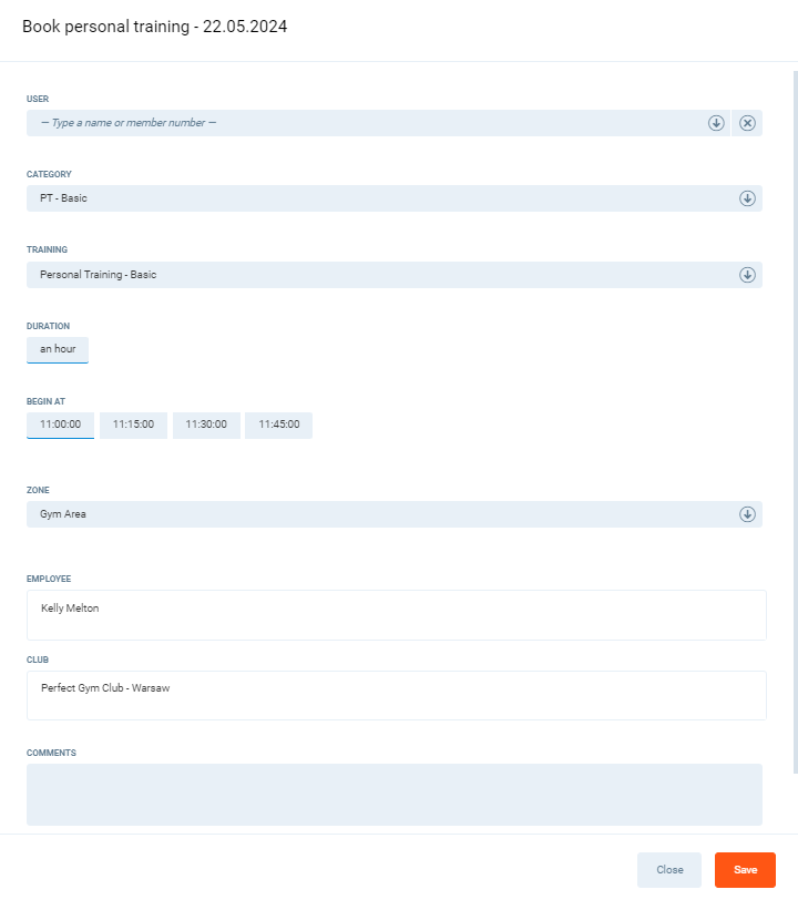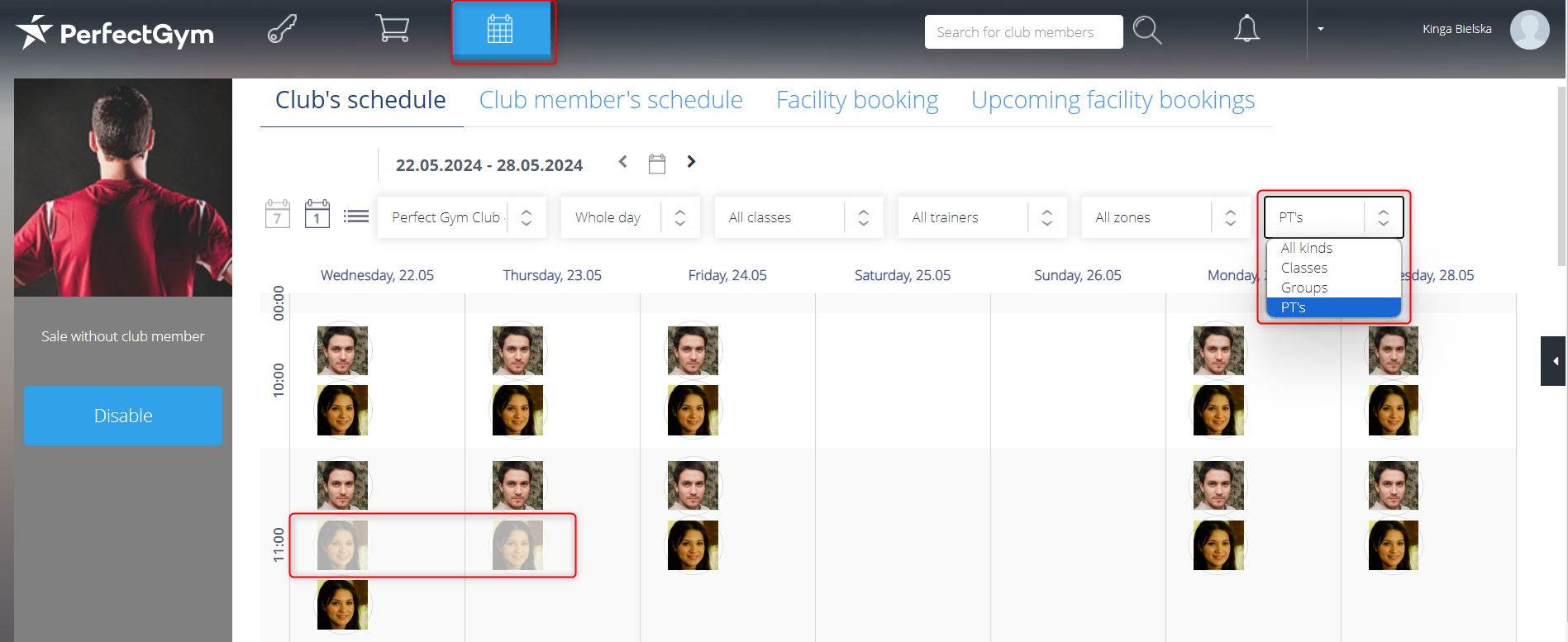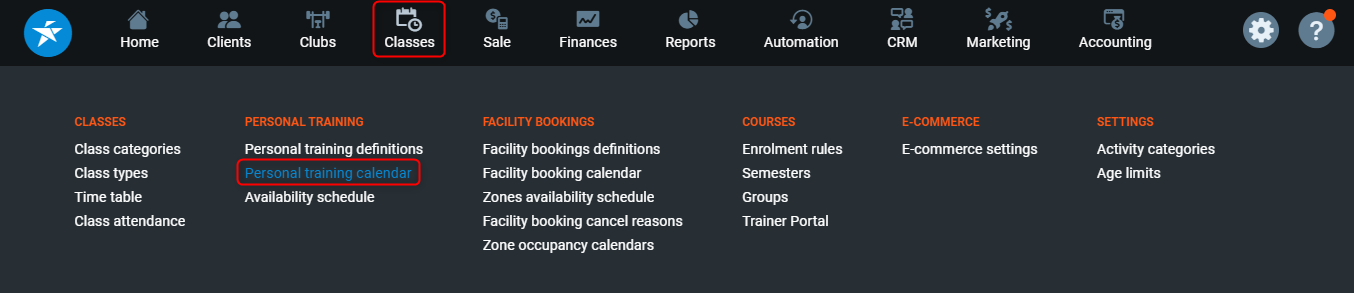 To book a Personal Training session via Perfect Gym Manager go to PGM -> Classes -> Personal training -> Personal training calendar.