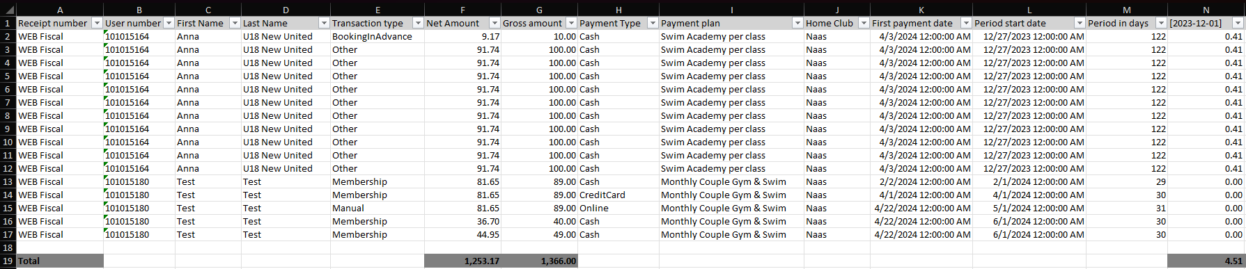 - Column M - Period in days - the number of days in a payment interval of a certain transaction,