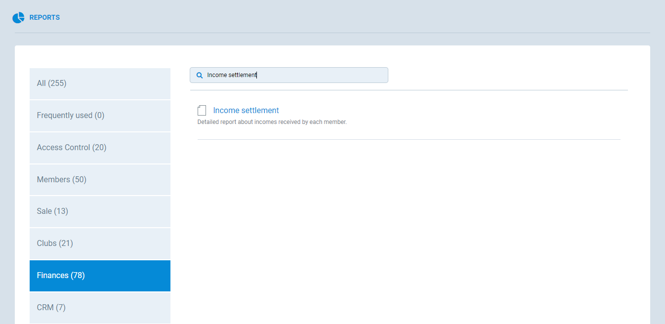 - Income settlement report allows you to generate a detailed list of incomes received by each member.