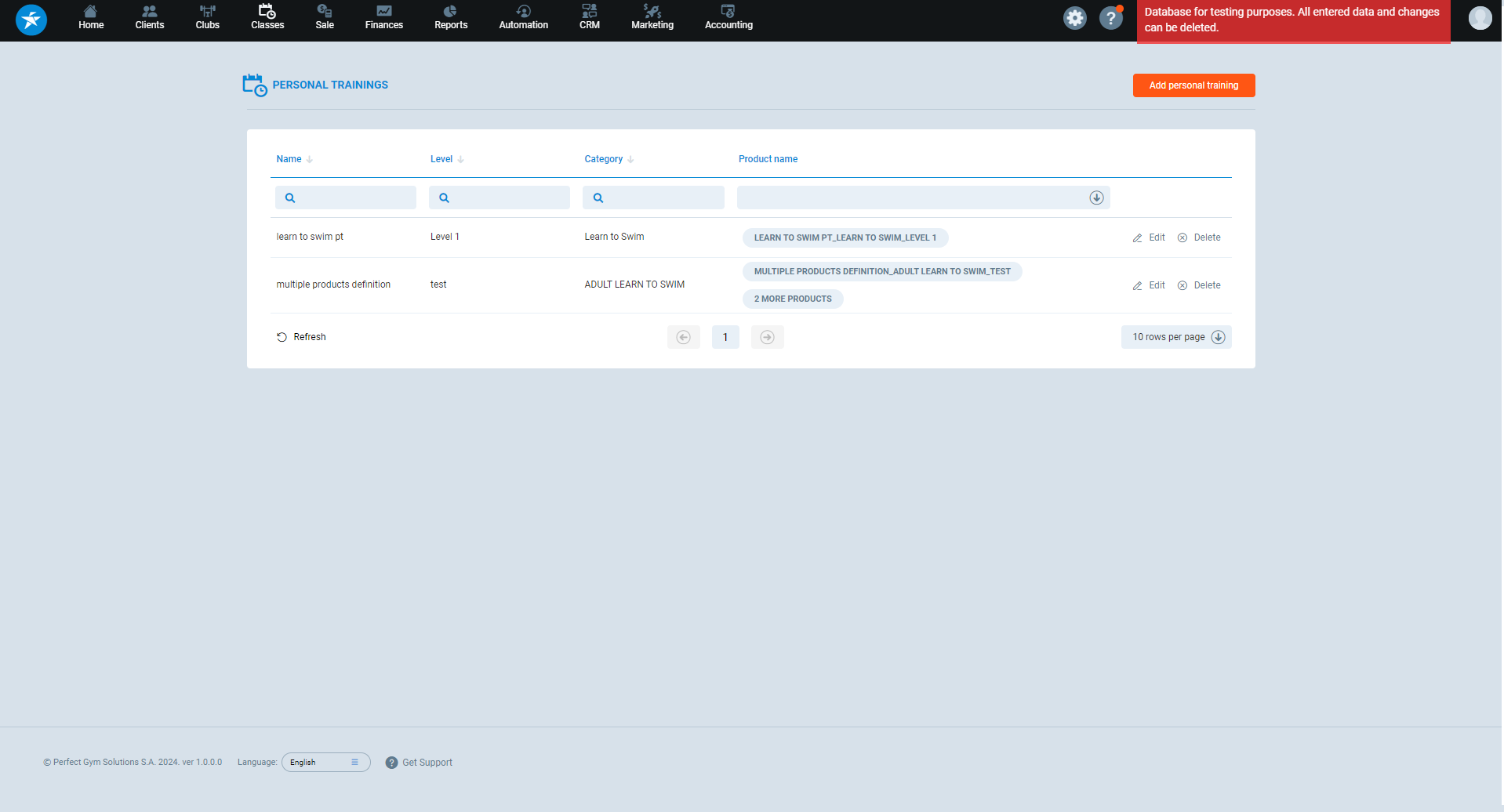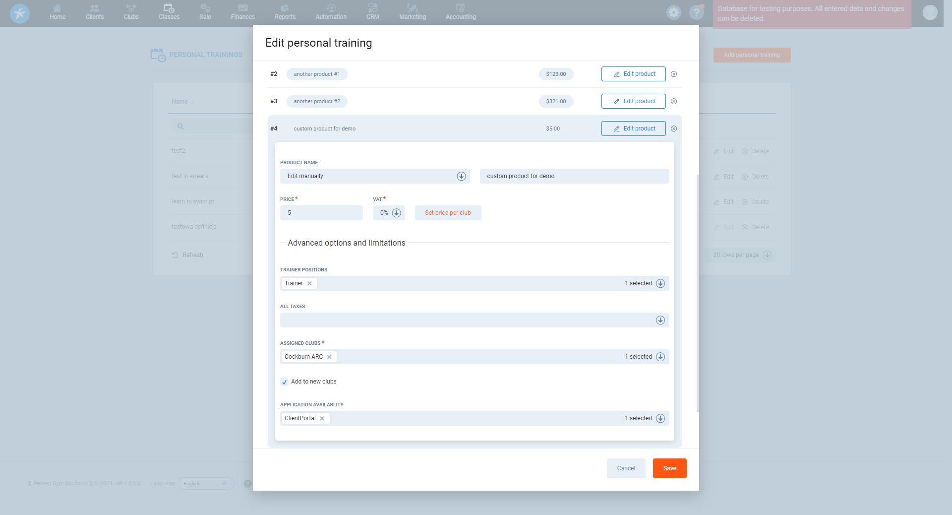 In Perfect Gym, you can create a personal training definition that enables the configuration of multiple products for booking personal training sessions. This article will provide insights into the process of setting up and effectively managing these products, enhancing your ability to accommodate various booking scenarios and requirements.