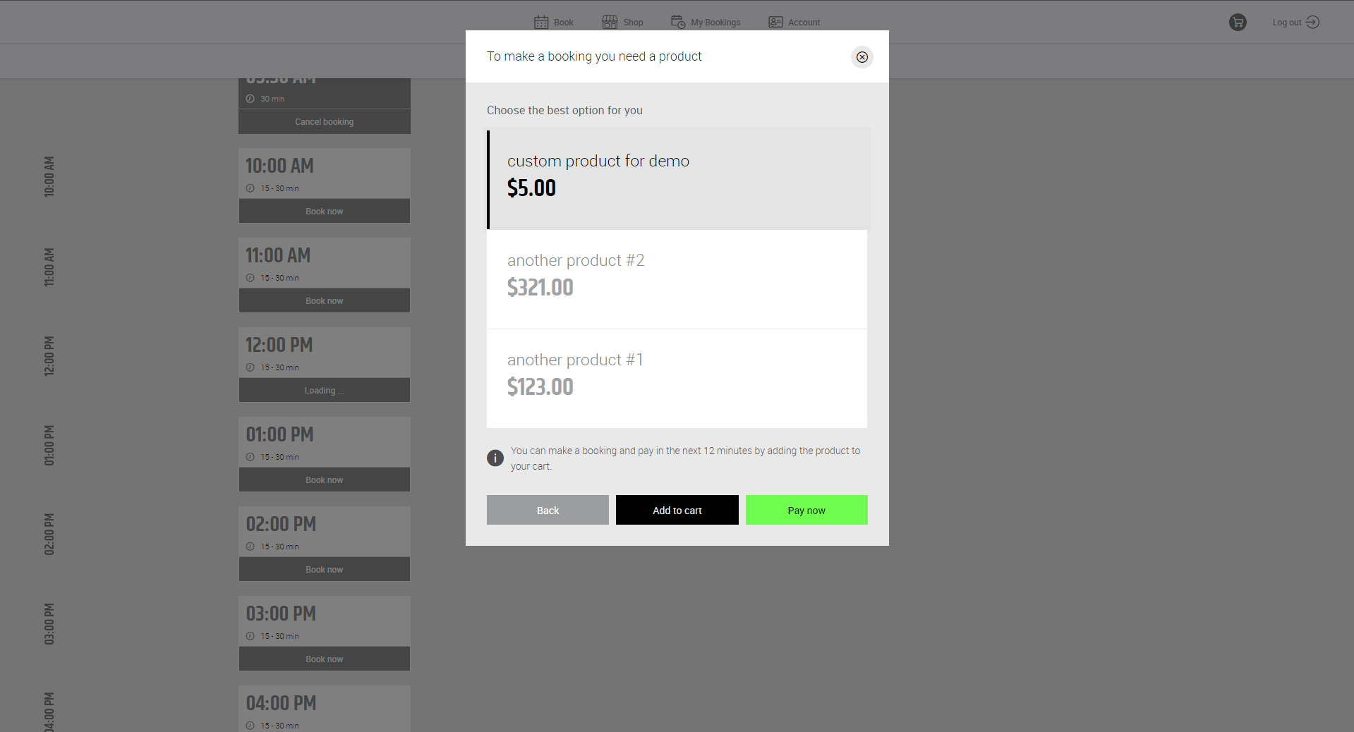 4. Once the product is purchased, it will be displayed for the client in the My Booking tab. The reservation details will also be available in PGM.